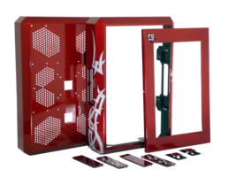 This is how kioskStyle does the box. Sure to stand out in any location, its distinct aesthetic is both designed for public use and public viewing. With a multitude of finishing options from powder coating, to airbrushing, to chrome plating, your corporate image and reputation are appropriately supported.